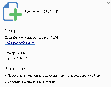 .URL+ RU – расширение для браузеров семейства Chromium, создаёт и корректно открывает файлы *.URL (ярлыки интернет‑ресурсов, Windows‑формат).